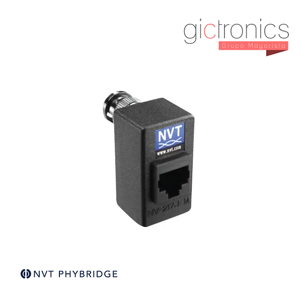 El NV-217J-M pasivo cuenta con una conexión RJ45 y un BNC macho que permiten la conexión directamente a la cámara o DVR. Es capaz de suministrar una señal totalmente ecualizada a la DVR cuando se usa con cualquier receptor activo de NVT, y sin embargo es compatible con todos los productos pasivos de NVT para aplicaciones menores a 225m.